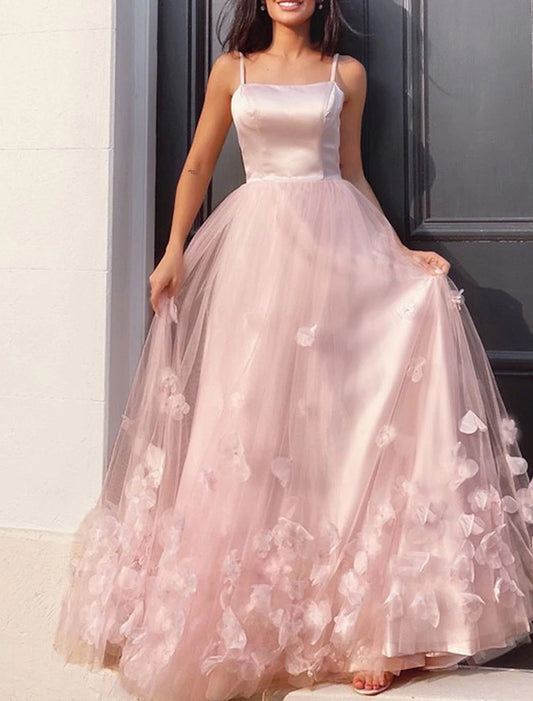 A-shaped ball party dress floral dress sweet long sleeveless thin shoulder strap pleated sticker sheer