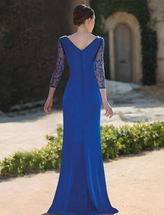 Tight Column Wedding Guests Generous and Elegant Dress Formal Wedding Guests Floor length 3/4 Long Sleeves V-Neck Elastic Belt Folded Bead Decoration