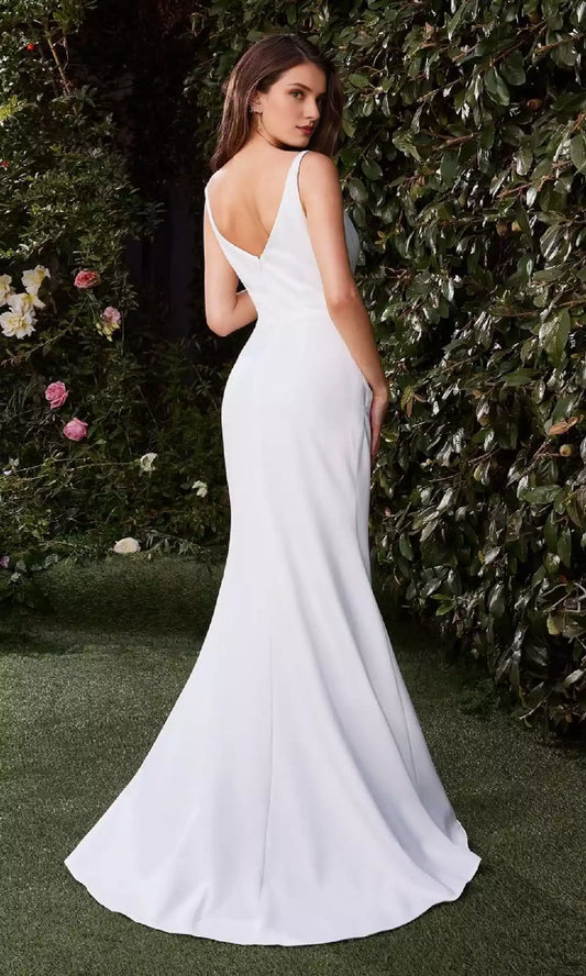 Stunning backless camisole V-neck side slit with short tail adds a unique charm and highlights your natural figure Prom Dresses