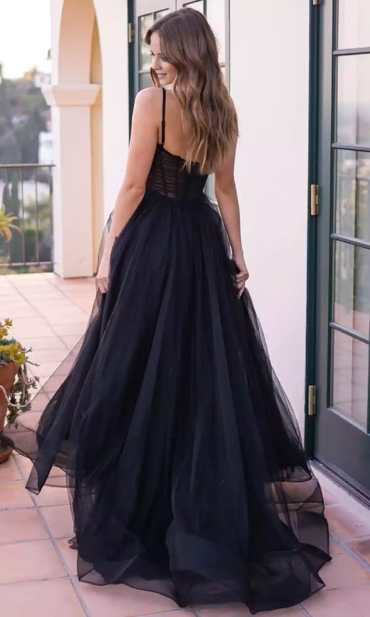 The beautiful and charming long A-line bead tight corset exudes a charming charm. The sheer fabric is hollowed out with fine straps and side slits. Prom Dresses