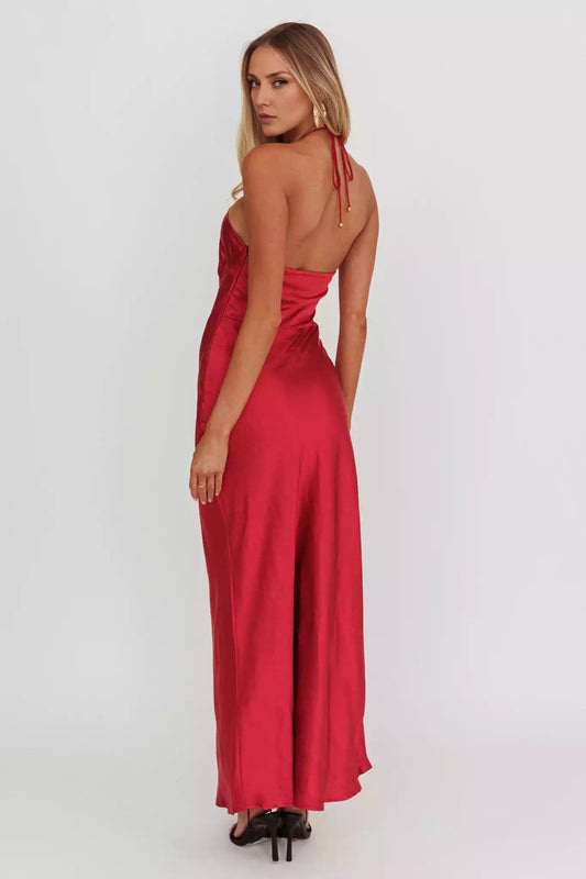 Absolutely stunning ultra long cross neck hanging, backless, adjustable shoulder straps with side zippers Prom Dresses