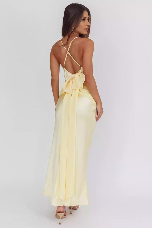Sweet backless neckline with rose knot lining and side zipper Prom Dresses