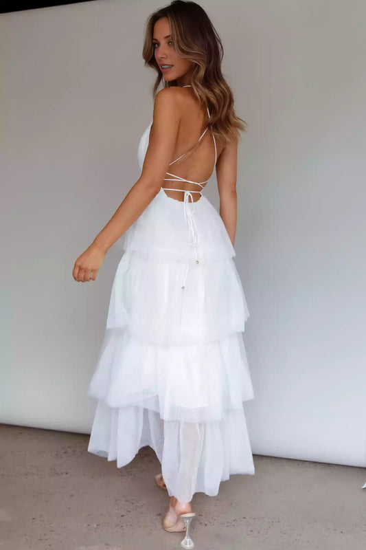 Classic cross hanging neck, backless, adjustable shoulder straps, side zippers Prom Dresses