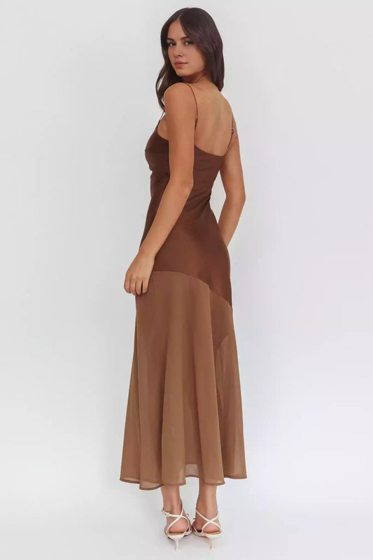 Gorgeous mid length adjustable thin shoulder straps, pleated chest, front slit, back with zipper Prom Dresses