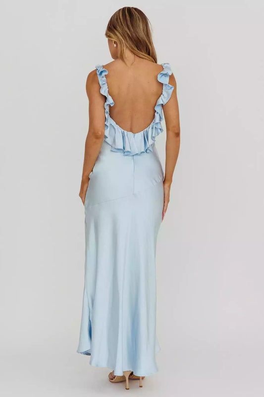 Gorgeous padding with ruffled edges, front slit, exposed back, invisible back zipper, Prom Dresses