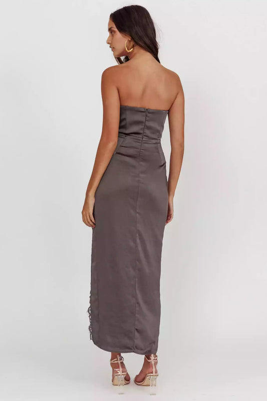 Exquisite strapless corset with lining, back strap, side zipper Prom Dresses