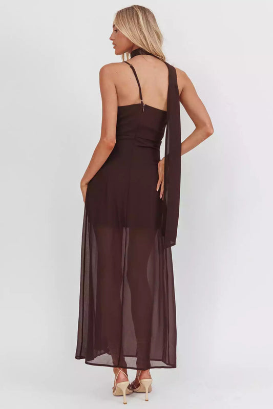 Stunning single shoulder camisole lined neck scarf detail chiffon back with zipper Prom Dresses