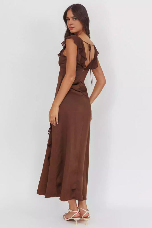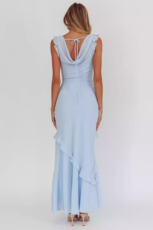 Exquisite ruffled edges without lining, ruffled edges with zipper at the back Prom Dresses
