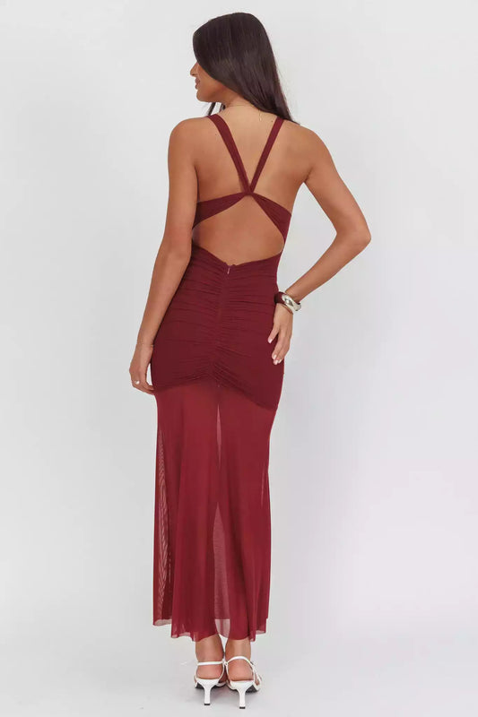 Prom Dresses with eye-catching lining, sleeveless adjustable shoulder straps, backless hanging neckline, zipper on the side