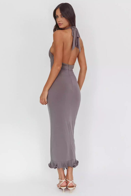 Heartwarming backless neckline lined with layered hem and zippered back Prom Dresses