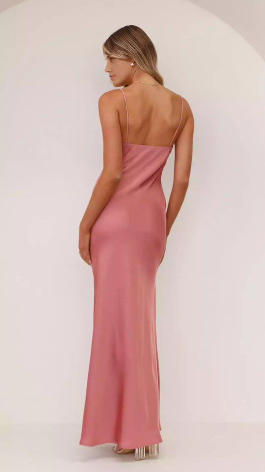 Elegant asymmetrical hanging collar, twisted shoulder strap, thin shoulder strap, side pleats and slits perfectly fit the body Prom Dresses