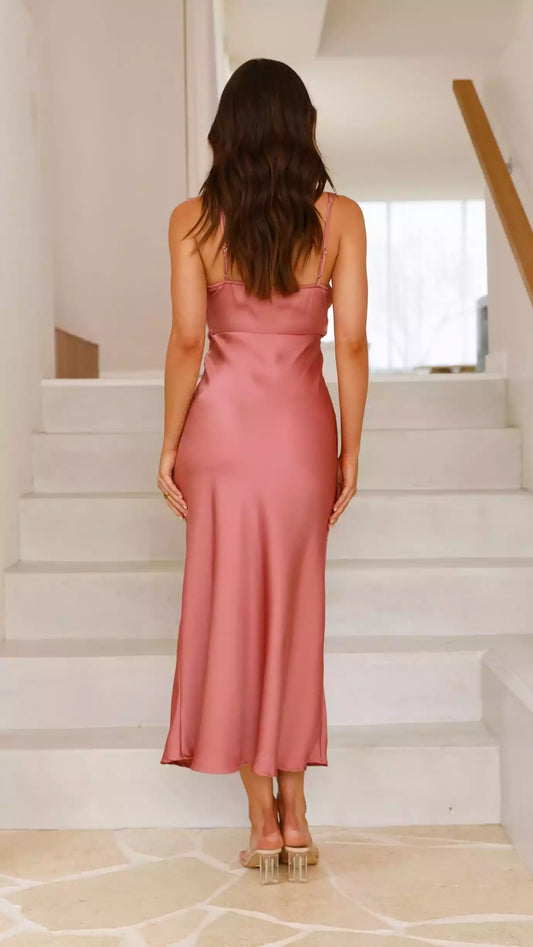 Eternal and elegant V-neck chest pleat details and exposed back twist details, hidden side zipper Prom Dresses