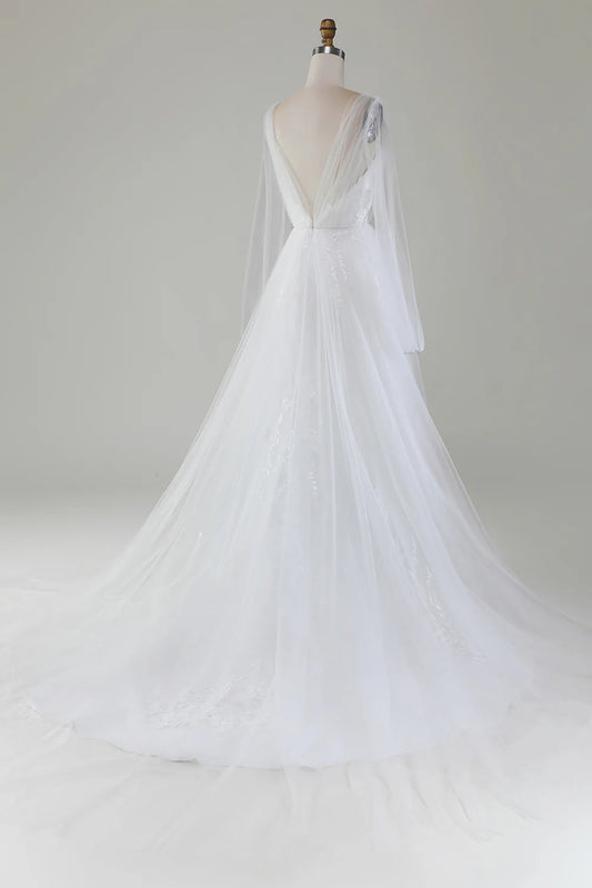 Ivory Long Sleeves Tulle A-Line Wedding Dress