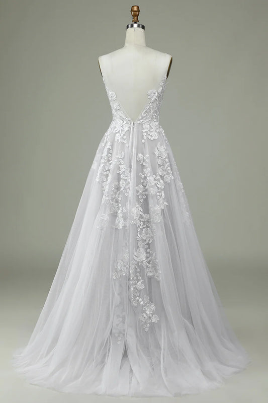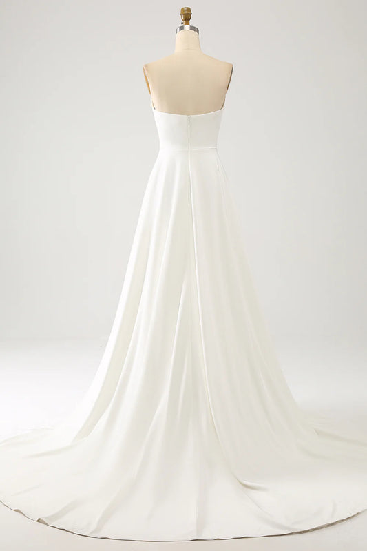 Ivory Mermaid Backless Long Wedding Dress with Slit