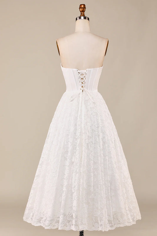 Ivory A-Line Tea-Length Tulle Corset Wedding Dress