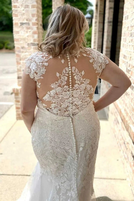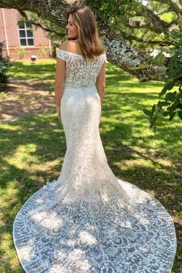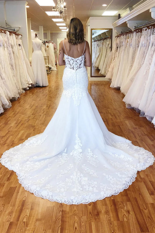 Lace V-Neck Backless Mermaid Long Wedding Dress