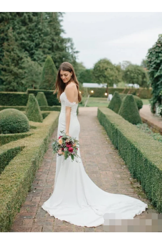 Elegant Off Shoulder Wedding Dress Sweet Beach Bride Dress
