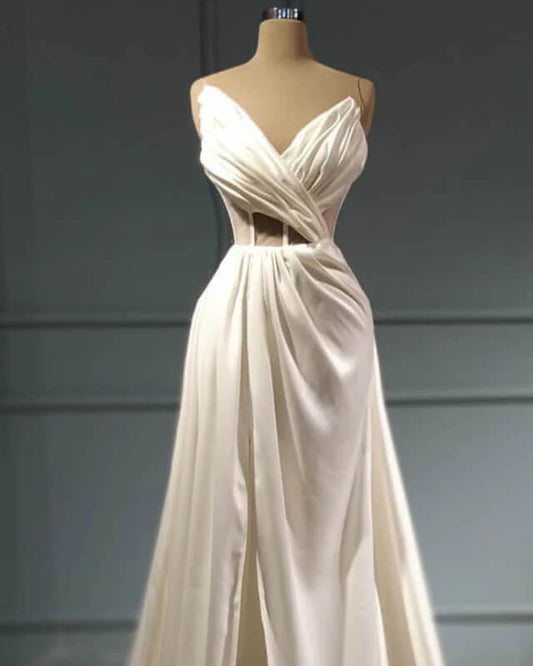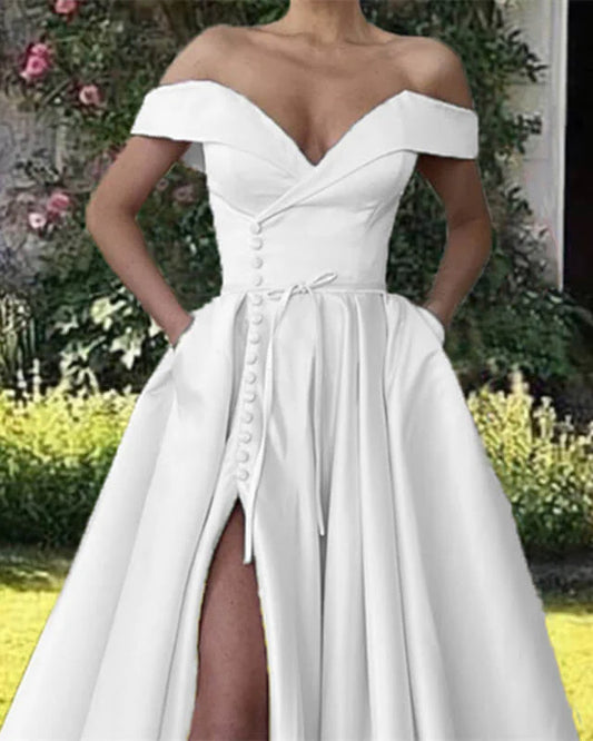 The fabric is carefully selected with smooth satin and lightweight chiffon, providing a delicate touch; Details hide ingenuity, pearl edging and three-dimensional floral decorations add a delicate touch, and the tailored fit highlights elegant curves. Wearing it, you are the center of attention, effortlessly capturing the most beautiful and happy moments at the wedding.