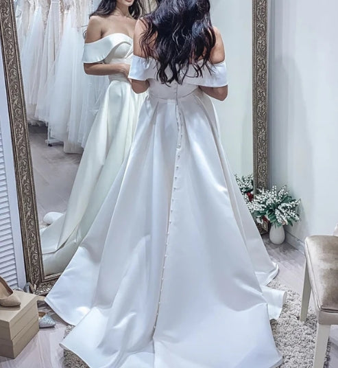 Wedding Dress Satin Split Off Shoulder