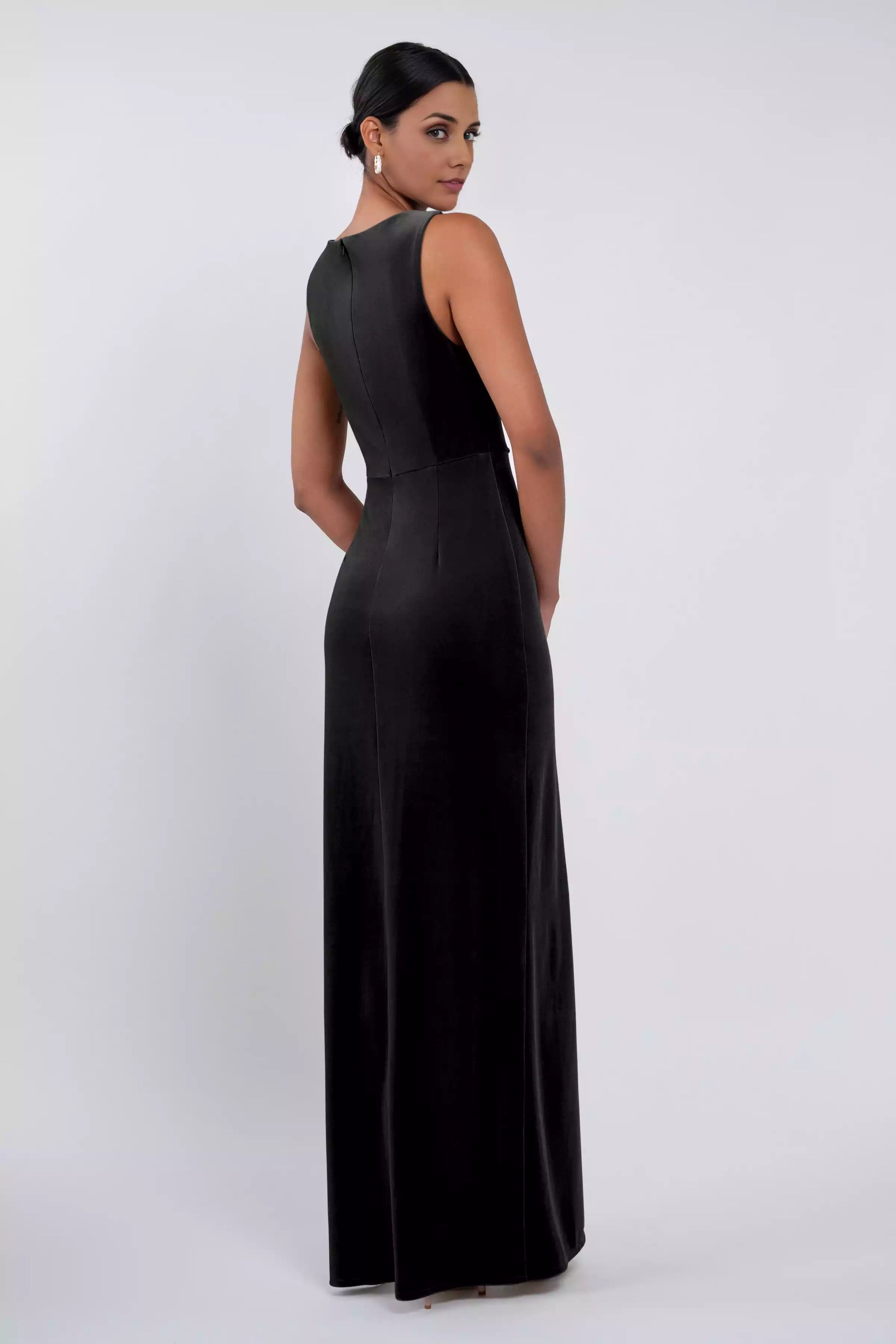 Beautiful velvet, elegant drape, fashionable high neck, mid waist, pleated tight corset, back mid zip Bridesmaid Dresses
