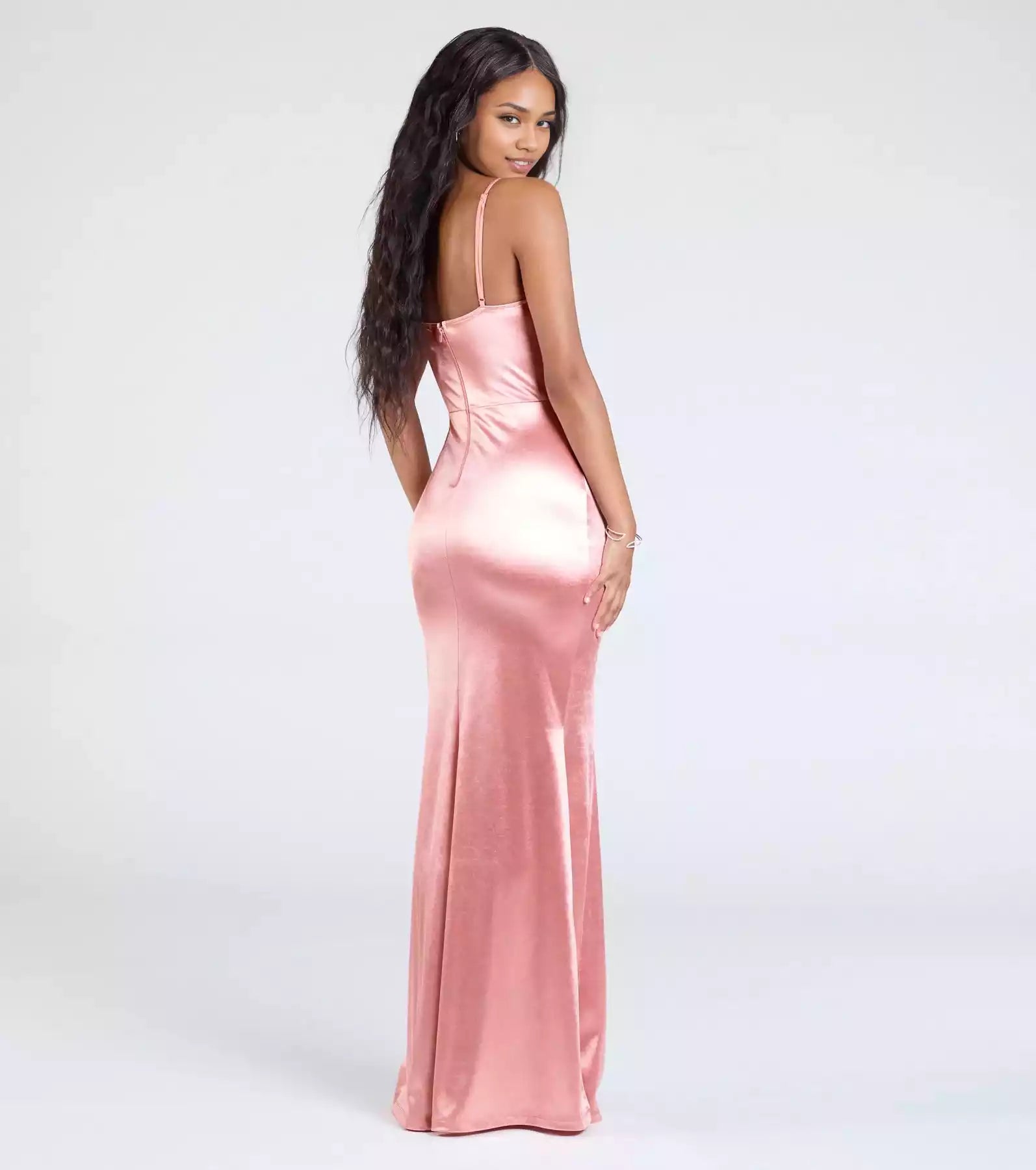 OKBBN's elegant elastic satin sweetheart neckline sequins with adjustable thin shoulder straps for mermaid and floor Prom Dresses. This dress is made of satin fabric, with a thin camisole and floral decoration on the collar, paired with a long fishtail silhouette, showcasing a gentle and fairy style. The satin material comes with a soft and glossy finish, and the slim strap cut showcases the shoulder and neck lines. The floral decoration on the collar adds a romantic atmosphere, while the fishtail skirt fits the body and enhances elegance and softness. It is suitable for formal occasions such as weddings and dinners, and is a high-quality choice for showcasing fashion taste and sweet dollar temperament.