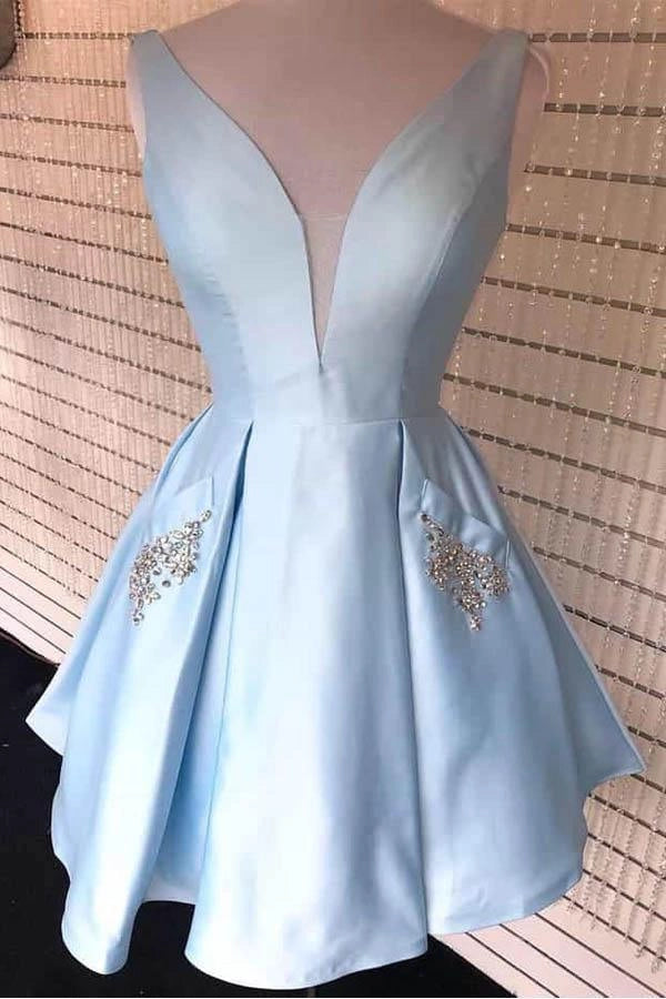 OKBBN's luxurious V-neck Burgundy satin with cute and fashionable silhouette Homecoming Dresses